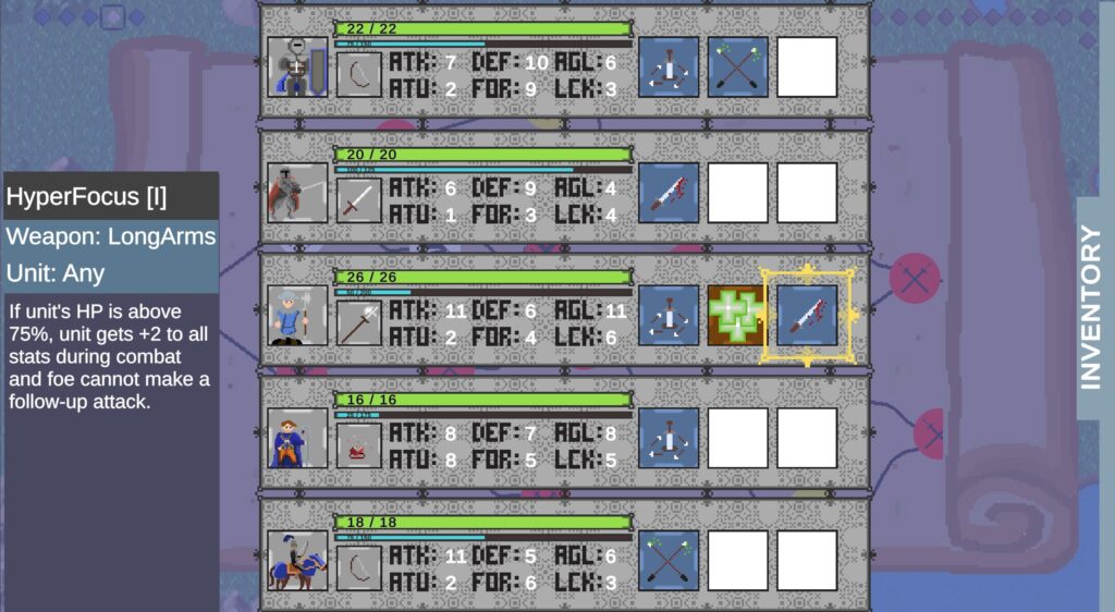 The skills for this build ended up focusing on letting units fight in unorthodox ways at the cost of rarely altering stats. This not only made combat outcomes rarely change, but made what little build-crafting we had feel very uninteresting for the player.